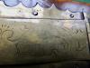 This rifle measures 56 5/8 inches in length with a full cherry stock. I have owned both signed Peter and Joseph Angstadt rifles with full cherry stocks and the early Lehigh stock architecture, and I consider it a signature characteristic of early Angstadt rifles. Adam Angstadt owned a farm adjacent to Johannes Moll's farm before relocating to the Kutztown area. Both Peter the elder and Joseph probably apprenticed with their father Adam. The later Angstadt's tend to use curly maple (see the Jacob Angstadt rifle elsewhere in this website. The octagon to round barrel of this smooth rifle measures 41 inches and is .50 caliber. Early features of this rifle include: 1) the elongated arc of the butt and wrist area, 2) the oval shaped wrist which is wider than it is deep, 3) a flat 1 5/8 wide butt, 4) the 4 piece simple design of the brass patchbox with closed side plates, 5) the lightly engraved rococo design on both the patchbox and the side plate, 6) the stylized urn shaped trigger guard finial, and finally, 7) the large .50 caliber bore. Angstadt family features on this rifle are the snow flake or asterix engraving on the top barrel flat, the light rococo engraving on the patch box lid with an "A A" integrated within the upper and lower scrolls, combined with stamped decoration. Inlays of brass rather than German silver are also an Angstadt characteristic. There are 10 brass inlays on this rifle including a large brass oval on the cheekpiece with a hunter's star engraved on it, a Lehigh characteristic. **HOLD**